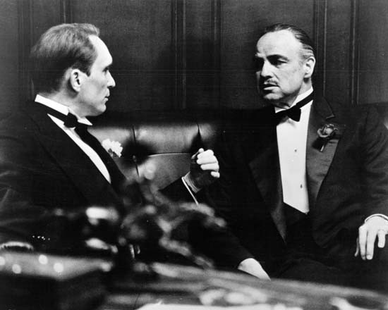 The Godfather Robert Duvall confers with Marlon Brando