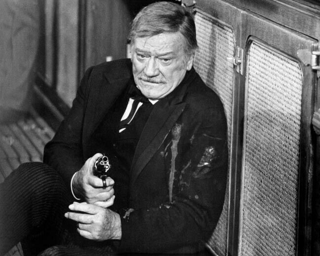 John Wayne as Books injured in saloon pulls his gun one last time 8x10 photo