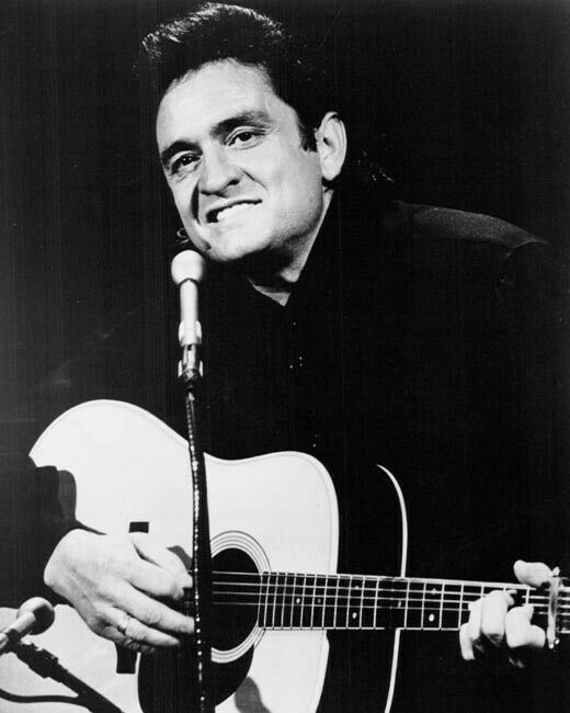 Johnny Cash in concert playing guitar late 1960's 8x10 inch photo