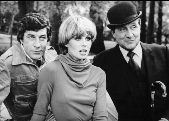 The New Avengers Joanna Lumley Gareth Hunt Patrick Macnee outdoor pose 8x10