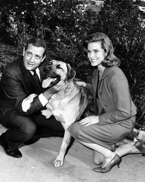 Perry Mason TV series Raymond Burr and unknown guest star with dog 8x10 photo