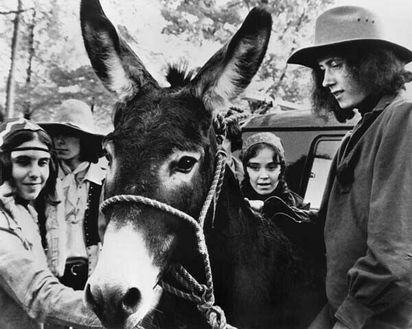 Alice's Restaurant 1969 Arlo Guthrie in scene with hippies & donkey 8x10 photo