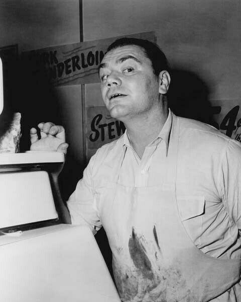 Ernest Borgnine in his butcher shop Oscar Winning 1950 Marty 8x10 inch photo