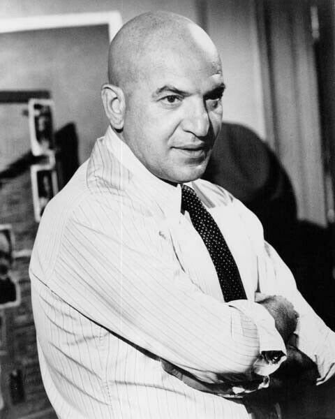 Telly Savalas in shirt sleeves in squad room as Kojak season 2 8x10 inch photo