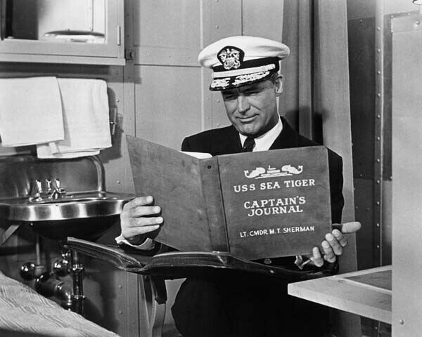 Cary Grant in uniform looks at Captains log Operation Petticoat 8x10 inch photo