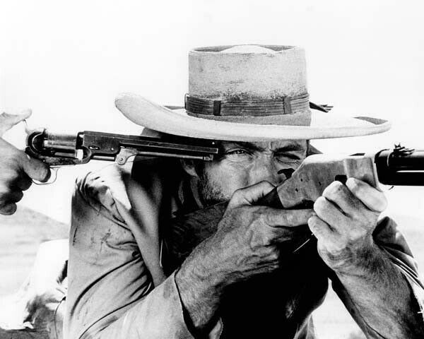 Clint Eastwood aims rifle gun to his head The Good The Bad & The Ugly 8x10 photo
