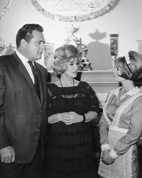 Perry Mason TV series Raymond Burr in scene with guest stars unidentified 8x10