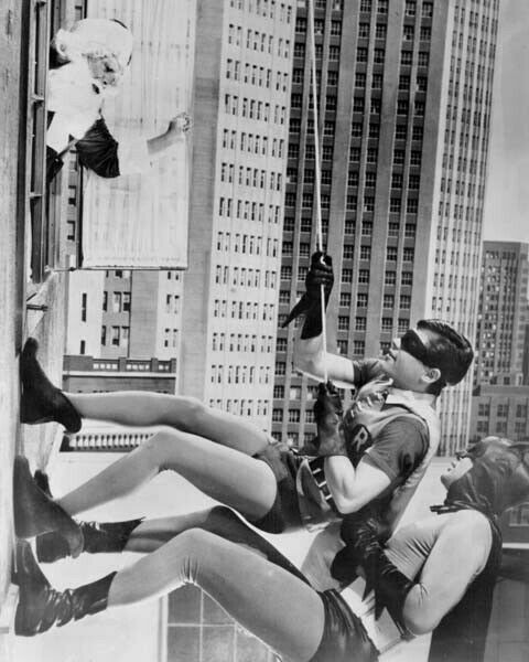 Batman TV Burt Ward & Adam West scale building Santa opens window 8x10 photo