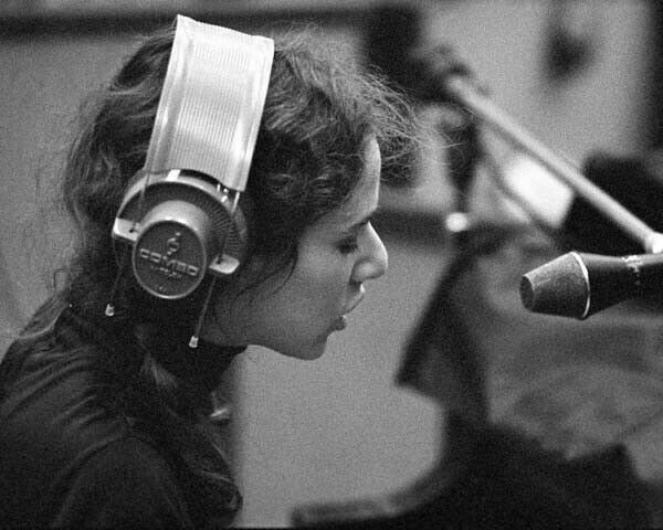 Carole King in recording session headphones on sitting at piano 8x10 photo