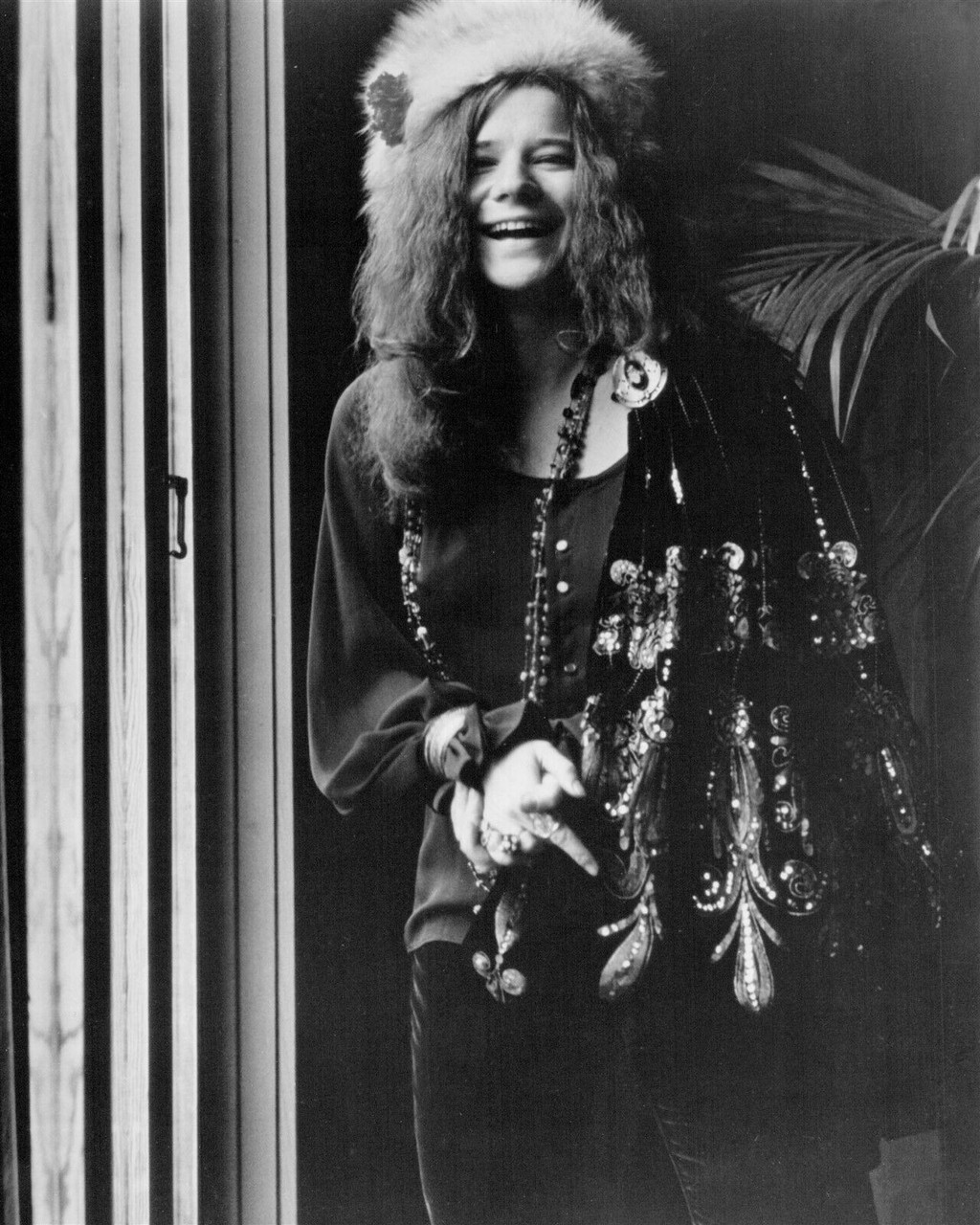 Janis Joplin laughing wearing fur hat 1975 documentary Janis 8x10 inch photo