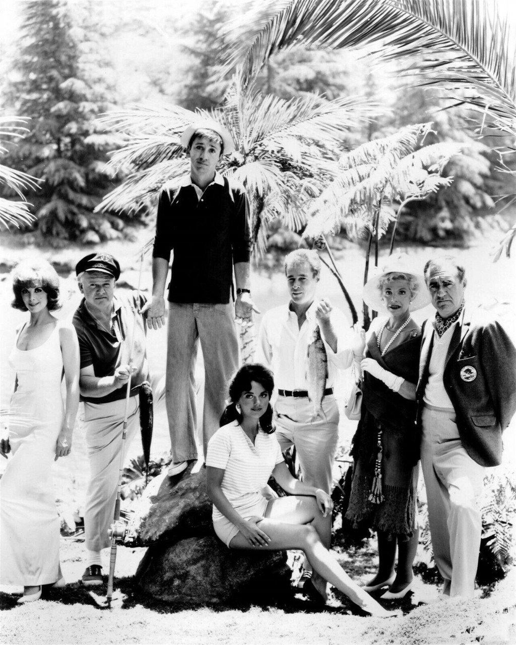 Gilligan's Island Bob Denver & the castaways pose on the beach 8x10 inch photo