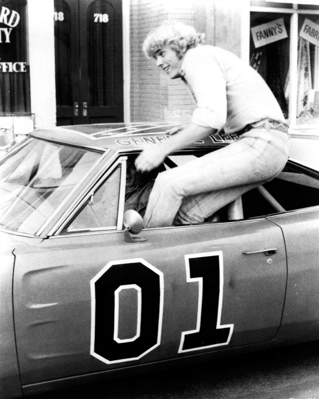 Dukes of Hazzard John Schneider jumps through window of General Lee 8x10 photo