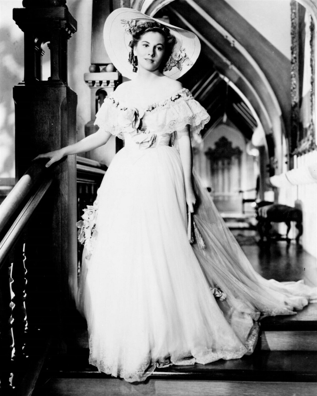 Maureen O'Hara beautiful full length in white gown and hat 8x10 inch photo