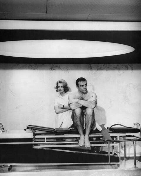 Thunderball Sean Connery sits on massage table Molly Peters behind 8x10 photo