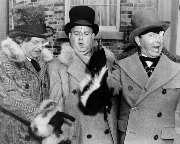 The Three Stooges Curly Larry and Moe with clothes pegs on noses 8x10 photo