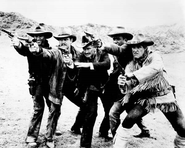 Outlaws 1986 TV Rod Taylor & team take aim Houser Lucking Roundtree Napier 8x10
