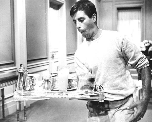 Jerry Lewis holds breakfast tray delivering room service Cinderfella 8x10 photo