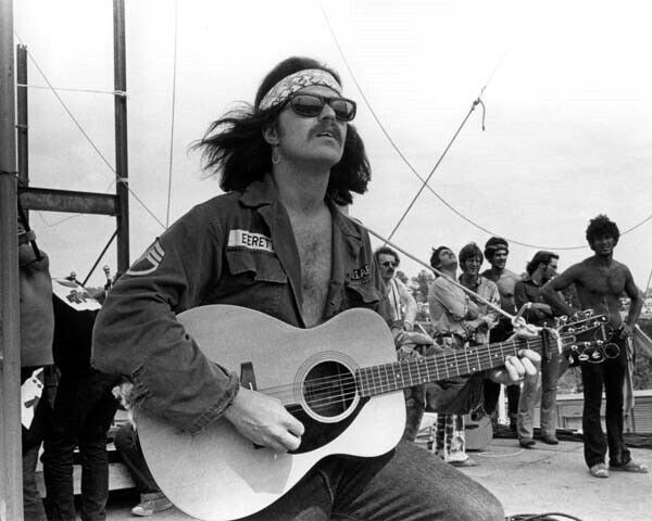 Country Joe McDonald 1969 strums his guitar at Woodstock 8x10 inch photo