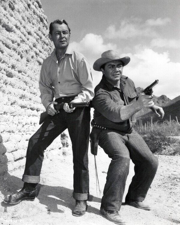 The Badlanders 1958 western Alan Ladd & Ernest Borgnine take aim 8x10 inch photo