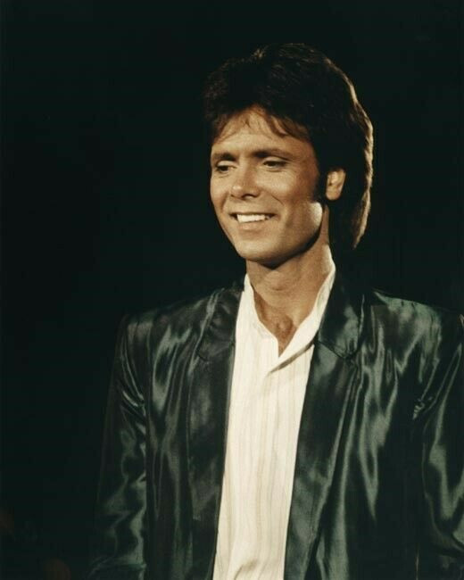 Sir Cliff Richard 1980's in concert pose in black suit 8x10 inch photo