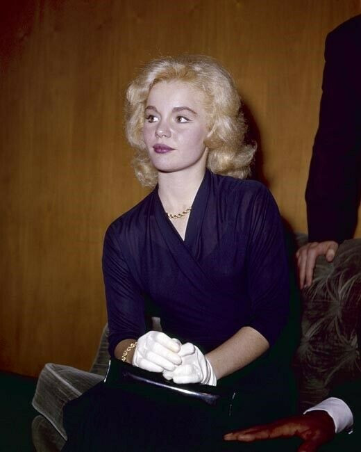 Tuesday Weld in white gloves holding handbag at Hollywood event 8x10 photo
