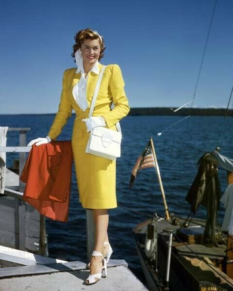 Barbara Stanwyck full length in yellow jacket & skirt on dock 1940's 8x10 photo