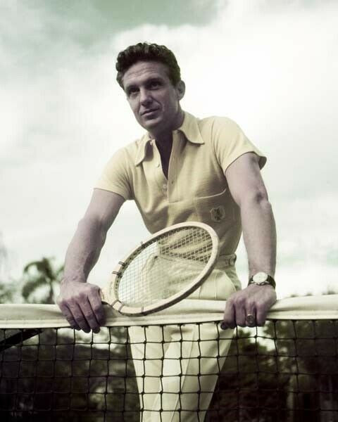 Robert Stack TVs Eliot Ness The Untouchables poses with tennis raquet 8x10 photo
