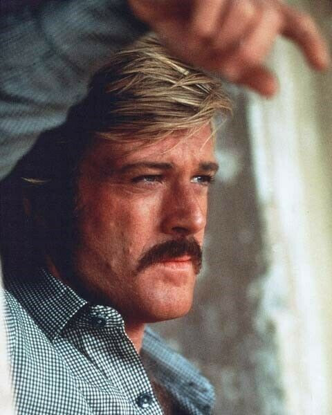Robert Redford in checkered shirt thoughtful pose as Sundance Kid 8x10 photo