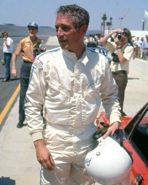 Paul Newman candid looks cool in racing outfit holding helmet 1970's 8x10 photo
