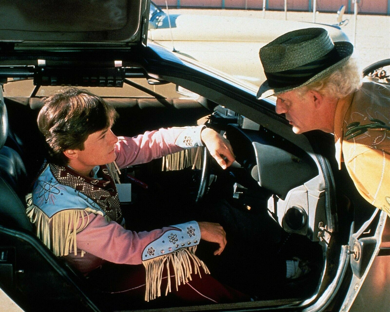 Back To The Future 3 Michael J. Fox in De Lorean Christopher Lloyd 8x10 photo