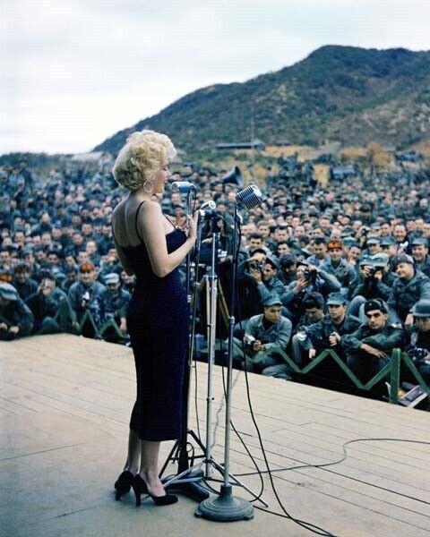 Marilyn Monroe 1954 on stage entertaining American troops in Korea 8x10 photo