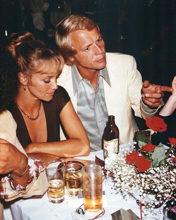 David Soul sits with Lynne Marta circa 1975 at Hollywood event 8x10 photo