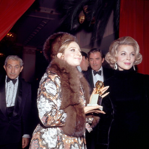 About this print: Rare Candid Of Barbra Streisand With Barbara Bain And Gregory Peck In Background