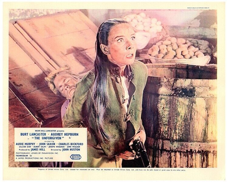 The Unforgiven 1960 Audrey Hepburn looks shocked holding gun 8x10 inch photo