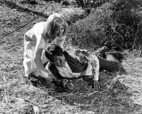 An image of Faye Dunaway as Bonnie Parker and Warren Beatty as Clyde Barrow in Bonnie and Clyde available as a poster, photograph or aluminum metal print. Your satisfaction guaranteed.