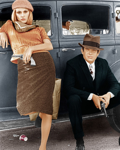An image of Faye Dunaway as Bonnie Parker and Warren Beatty as Clyde Barrow in Bonnie and Clyde available as a poster, photograph or aluminum metal print. Your satisfaction guaranteed.