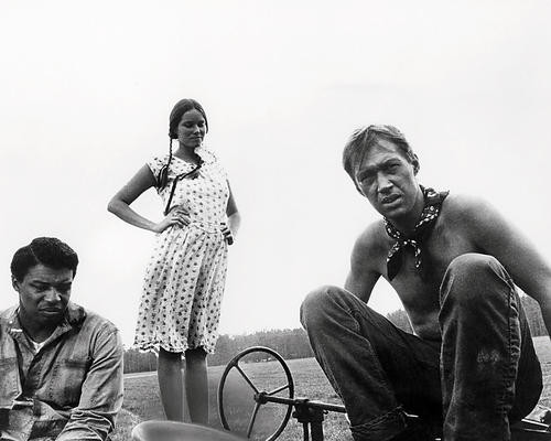 An image of Barbara Hershey as Boxcar Bertha, David Carradine as Big Bill Shelly and Bernie Casey as Von Morton in Boxcar Bertha available as a poster, photograph or aluminum metal print. Your satisfaction guaranteed.