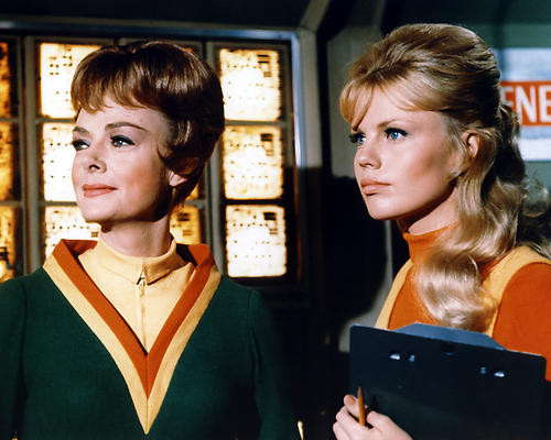 An image of June Lockhart as Maureen Robinson and Marta Kristen as Judy Robinson in Lost in Space available as a poster, photograph or aluminum metal print. Your satisfaction guaranteed.