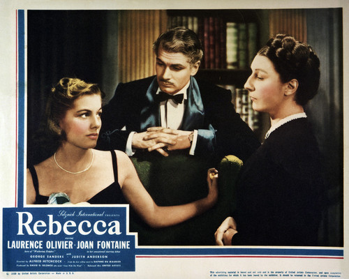 An image of Laurence Olivier as 'Maxim' de Winter and Joan Fontaine as Mrs. de Winter and Judith Anderson as Mrs. Danvers in Rebecca. Detailed product information is shown below.