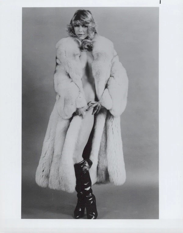 Marilyn Chambers poses in fur coat and boots vintage 8x10 inch photo