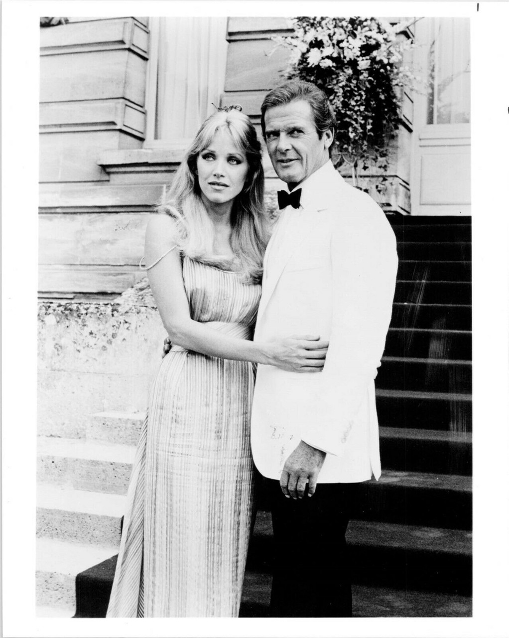 A View To A Kill 8x10 photo Roger Moore in white tux with Tanya Roberts