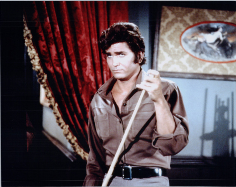 Michael Landon as Little Joe holding pool cue in Ponderosa Bonanza 8x10 photo