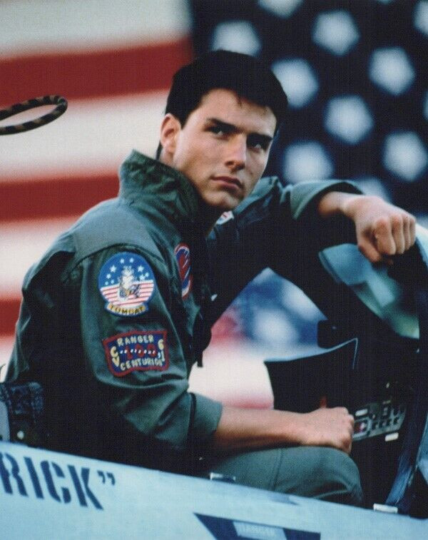 Tom Cruise vintage 8x10 inch photo seated in jet by American flag Top Gun iconic