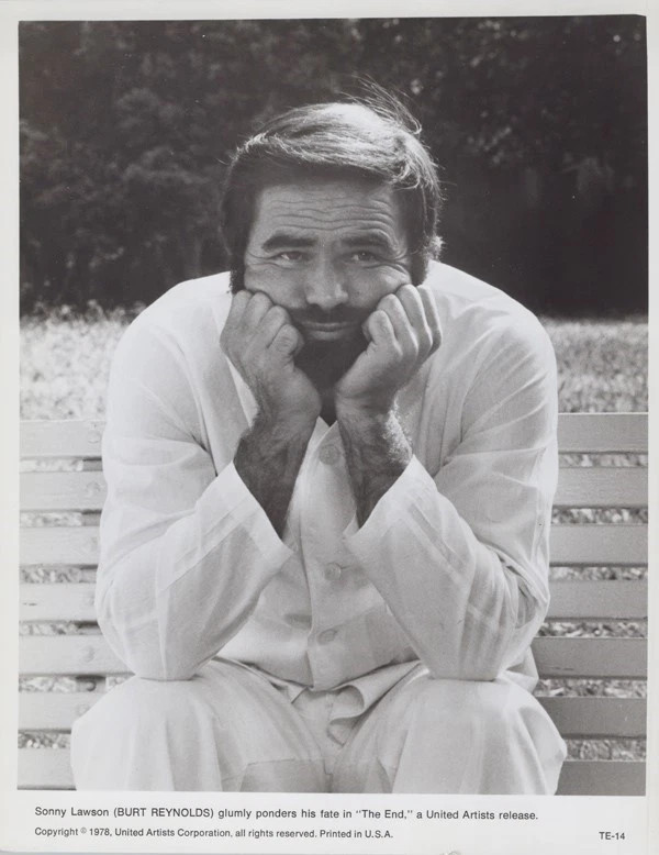 Burt Reynolds 1978 original 8x10 inch photo sitting on bench The End
