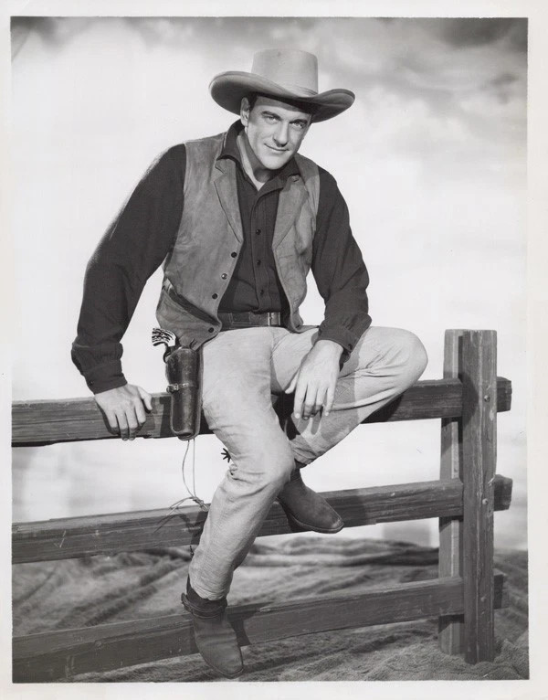 James Arness iconic Marshall Matt Dillon sits on fence Gunsmoke 7x9 inch photo