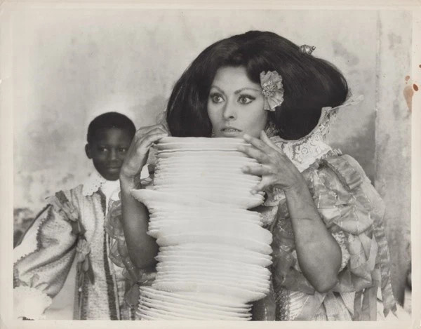 Sophia Loren original 8x10 inch frantic cleaning holding plates