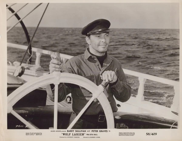 Barry Sullivan 1958 original 8x10 inch photo Wolf Larsen piloting ship