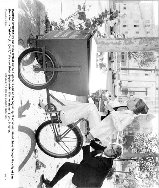 What's Up Doc 1972 original 8x10 photo Ryan O'Neal pushes Barbra Streisand bike