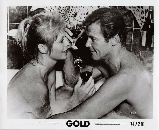Gold 1974 original 8x10 photo Roger Moore Susannah York share bath tub