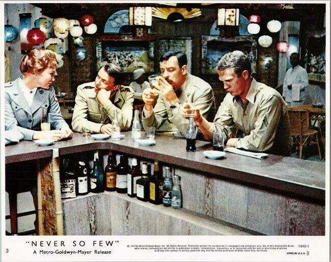 Never So Few Frank Sinatra Steve McQueen drink at bar original 8x10 lobby card